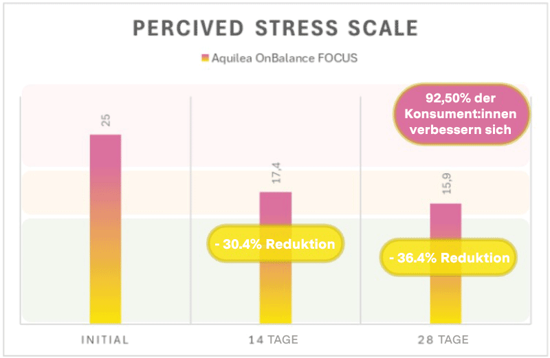 Verbesserungen auf der PSS-Skala wurden bei 92,50 % der Konsument:innen von Aquilea OnBalance Focus beobachtet.